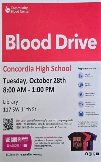 Concordia R-2 School District is excited to announce the first Community Forum for the 2025-2026 school year. The public is invited to attend and participate in a discussion regarding the school safety and crisis management. The District is currently revising and updating the Safety and Crisis Management Plan and will be discussing legislative impacts on the revised plan as well as school safety. The Community Forum is scheduled for Monday, October 20, 2025 at 6:00 pm in the CHS Library. The Forum will also be livestreamed on the CHS Facebook page and available to view afterwards.